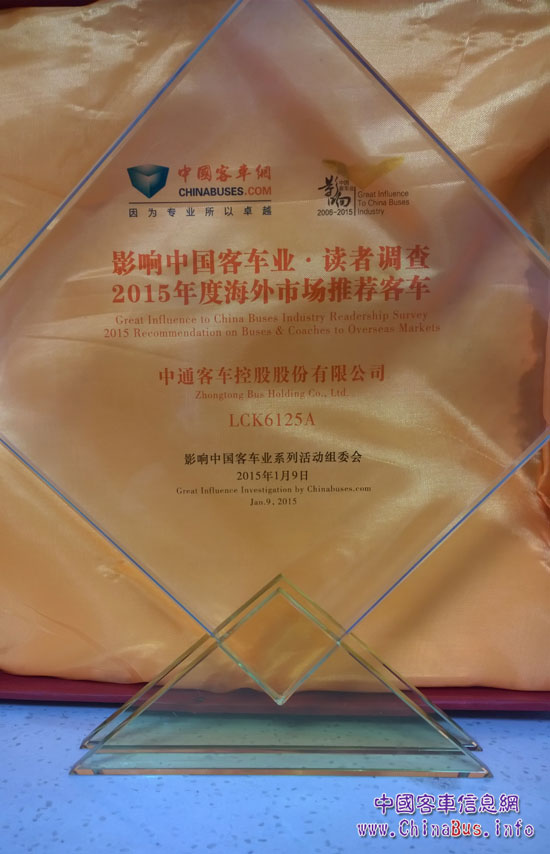 2014年中通客車愈戰(zhàn)愈勇,在國際競爭中頻頻勝出:沙特576輛,摩洛哥126輛,秘魯96輛……百臺以上的訂單絡(luò)繹不絕。并且創(chuàng)造了45天2186輛沙特訂單一次性交付的奇跡。目前,中通客車在海外市場,相繼出口全球80多個國家和地區(qū),涵蓋亞洲、歐洲、美洲、非洲、大洋洲。已在海外70多個國家擁有代理商。中通的產(chǎn)品作為中國客車行業(yè)精品的代表,馳騁在世界各地,獲得了當?shù)赜脩艏皣鴥?nèi)專家的認可,所以國內(nèi)及海外推客車推薦獎的獲得,對中通來確是實質(zhì)名歸。