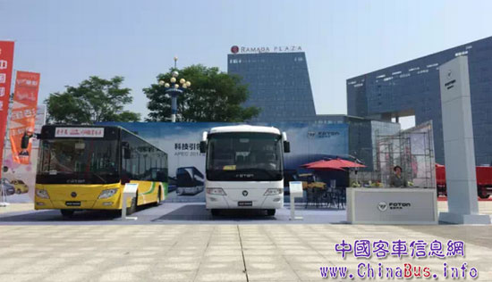 北京公交集團攜福田歐輝客車BJ6123C7BCD(LNG)、12米在線充電純電動、6.5米迷你純電動三款產(chǎn)品亮相展會,助力“清潔空氣”行動。