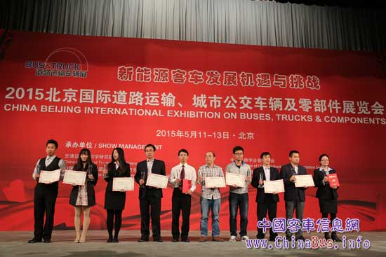 福田歐輝新品e客榮獲2015年度最佳公路客車獎(jiǎng)、8.5米純電動(dòng)客車榮獲2015年度最佳公交客車獎(jiǎng)