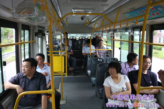 參會人員乘坐BJ6851快充純電動客車環(huán)島游覽