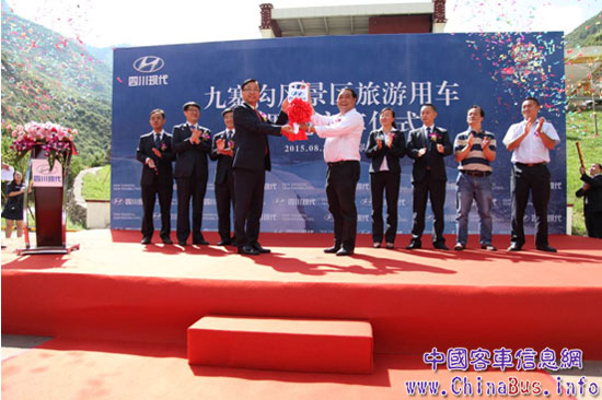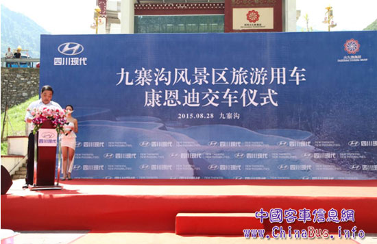 2015年8月28日,四川現(xiàn)代40輛康恩迪成功交付九寨溝國家5A級風(fēng)景區(qū)。四川現(xiàn)代銷售本部長金基成,副本部長鄧義軍,阿壩大九寨旅游集團(tuán)有限責(zé)任公司九寨溝旅游分公司副總經(jīng)理任躍林及有關(guān)領(lǐng)導(dǎo)出席并參加了交車儀式,采購方代表及全國主要媒體也應(yīng)邀到場,共同見證了這一神圣時刻。隨后,康恩迪將作為轉(zhuǎn)運(yùn)班車在九寨溝景區(qū)內(nèi)循環(huán)行駛,為天南海北來九寨溝風(fēng)景區(qū)旅游的游客提供高端旅游服務(wù)。