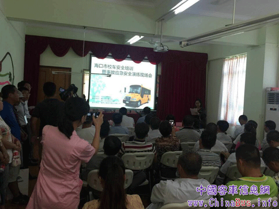 演練開始前,宇通負(fù)責(zé)人湯楊事先介紹了校車緊急逃生注意事項(xiàng),同時(shí)強(qiáng)調(diào)此次演練是是假設(shè)在校車遇到緊急突發(fā)情況時(shí),校車上的所有人員安全離開車輛的一次預(yù)演。此次預(yù)演也旨在為??谑兴行\嚢踩菥毺峁┮粋€(gè)較好的校車安全演練模板。