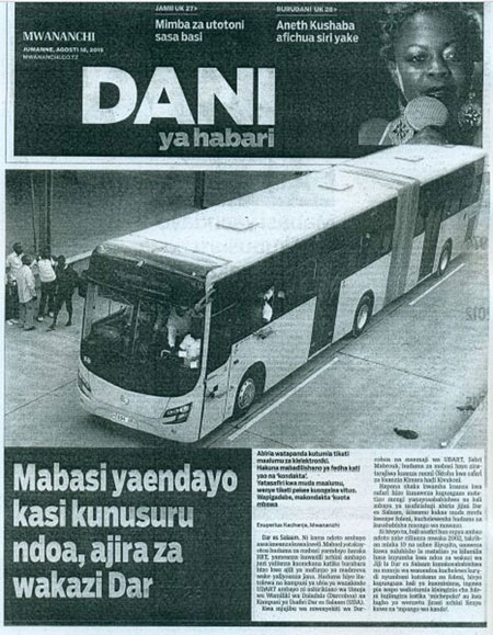 當(dāng)?shù)谝慌嚢l(fā)運至坦桑尼亞時,達累斯薩拉姆市在其交通樞紐Ubungo 站舉行了盛大的項目運營啟動儀式,吸引了當(dāng)?shù)亟?000 名交通運輸業(yè)主和民眾到場,有30 多家當(dāng)?shù)仉娨?、報紙等媒體全程報道。坦桑尼亞當(dāng)?shù)刈畲蟀l(fā)行量的英文報紙《衛(wèi)報》(坦桑尼亞版)以頭版標題“達市BRT 公交首次實現(xiàn)無人售票”來進行報道,而當(dāng)?shù)厮雇呶骼镎Z報紙《DANI》則以更關(guān)注民生的標題“快速公交為達市居民提供更多就業(yè)機會”為標題,坦桑尼亞官方報紙《坦桑日報》則在其頭版頭條上以 “BRT 司機被要求進行集中培訓(xùn)和專業(yè)技能考核”這樣的標題進行深度報道。金旅在當(dāng)?shù)氐某晒?,占?jù)了新聞媒體的頭條,并被諸多媒體大篇幅進行追蹤報道。