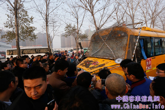 宇通校車撞擊墻面后的瞬間