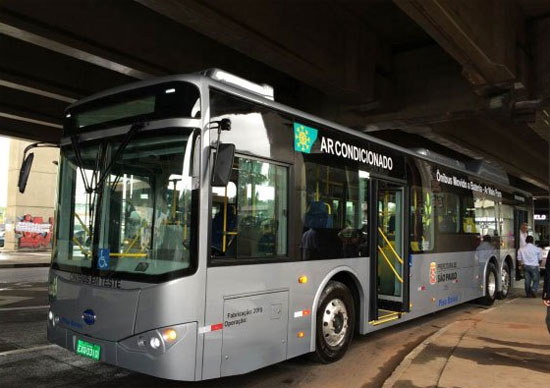 于巴西首次亮相的比亞迪15米純電動大巴K10A