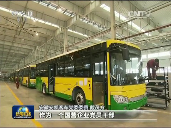 12月30日,中央電視臺《新聞聯(lián)播》就28日至29日習近平總書記在中共中央政治局“三嚴三實”專題民主生活會上的重要講話和會議精神,播出了主題為《習近平總書記在中央政治局專題民主生活會上重要講話引起強烈反響》的專題新聞,安凱客車董事長戴茂方作為全國唯一的企業(yè)代表接受采訪,再度登上中央電視臺《新聞聯(lián)播》。在這個最具影響力的新聞節(jié)目上,安凱客車董事長戴茂方表示將貫徹習總書記的講話精神,帶頭踐行“三嚴三實”。