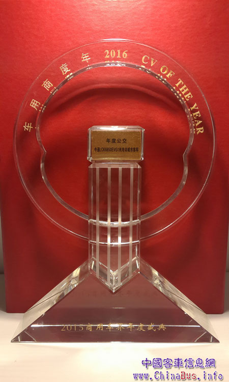 2016年1月15日,在北京舉行的“2015商用車界年度盛典”上,中通客車憑借2015年出色市場(chǎng)表現(xiàn)和良好市場(chǎng)反饋,贏得了用戶、活動(dòng)主辦方及業(yè)界人士的一致認(rèn)可,獲得兩項(xiàng)大獎(jiǎng)。其中,中通客車榮獲“2015用戶最滿意商用車品牌”稱號(hào),中通LCK6850EVG1純電動(dòng)城市客車則被評(píng)為2015年“年度公交”。