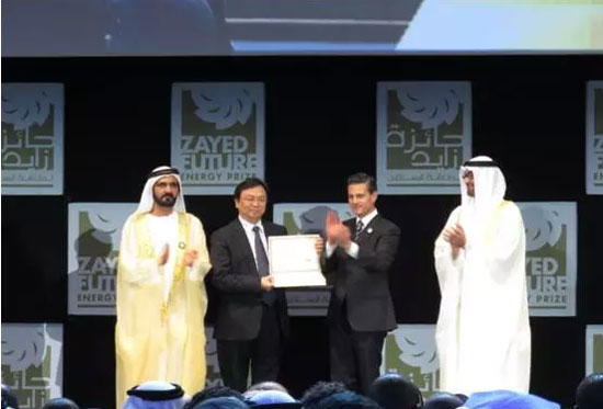 “扎耶德未來能源獎”是為紀念已故阿布扎比酋長及阿聯(lián)酋奠基人謝赫·扎耶德·本·蘇旦·阿勒納哈揚陛下,于2008 年由阿聯(lián)酋政府設(shè)立,由馬斯達爾管理,每年評選一次。以“創(chuàng)新力”、“領(lǐng)導(dǎo)力”、“長期前景”和“影響大小”為標準,表彰在可再生能源與可持續(xù)發(fā)展領(lǐng)域做出突出貢獻的個人和組織,旨在激勵全球能源領(lǐng)域的新一代創(chuàng)新者為未來打造解決方案。一年一度的“扎耶德未來能源獎”,由全球知名可再生能源專家組成評審團評審,授予對象包括個人、企業(yè)、機構(gòu)或非政府組織,其中,獲提名的大型企業(yè)應(yīng)該已經(jīng)獲得業(yè)務(wù)成功和領(lǐng)先地位,有著明確的發(fā)展愿景,并且對自身在未來能源發(fā)展中的作用有始終如一的可持續(xù)戰(zhàn)略。