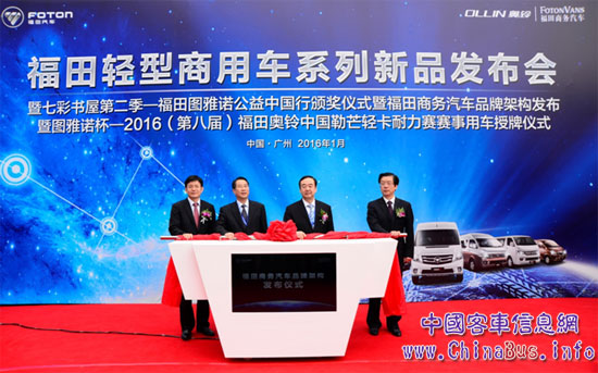2016年1月10日,福田輕型商用車系列新品發(fā)布會暨七彩書屋第二季——福田圖雅諾公益中國行頒獎儀式暨福田商務(wù)汽車品牌架構(gòu)發(fā)布儀式在廣州舉行。在福田輕型商用車大整合戰(zhàn)略下成長近一年時間的福田商務(wù)汽車2015年成效顯著,實現(xiàn)銷售3.7萬臺,圖雅諾實現(xiàn)市場突破,月銷量突破500臺,進入行業(yè)前四;風景G7、蒙派克E (新產(chǎn)品)月銷量均突破500臺,產(chǎn)品結(jié)構(gòu)調(diào)整取得成效,中高端產(chǎn)品比重從35.3%提升到63.0%。而全新商務(wù)汽車品牌架構(gòu)調(diào)整后,形成圖雅諾、風景、蒙派克三大產(chǎn)品品牌,未來福田商務(wù)汽車將以圖雅諾和風景業(yè)務(wù)為主線力謀市場的進一步發(fā)展,致力于通過結(jié)構(gòu)調(diào)整、營銷創(chuàng)新,實現(xiàn)未來整合增長規(guī)劃。