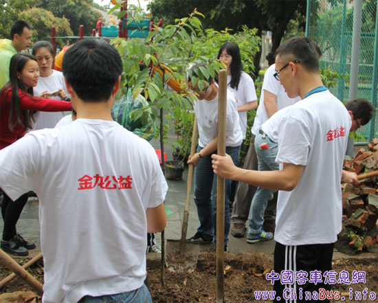 4月25日,由金龍客車和星巴克兩家企業(yè)聯(lián)手組建的愛心公益志愿團(tuán)隊(duì),冒雨來到廈門市特殊教育學(xué)校,從校園墻壁美化到果樹種植;從客車安全教育培訓(xùn)到園區(qū)環(huán)境清掃,以實(shí)際行動(dòng)踐行企業(yè)社會(huì)責(zé)任,溫暖校園,為學(xué)校師生送去濃濃關(guān)愛。
