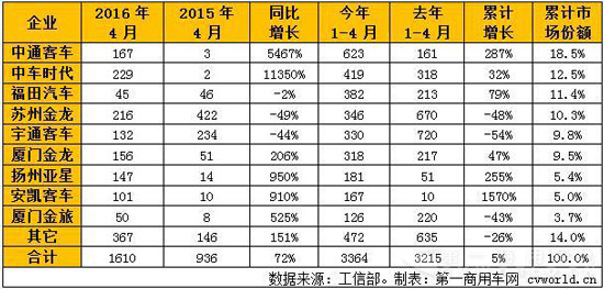 中通雙料冠軍 中車(chē)福田緊隨其后