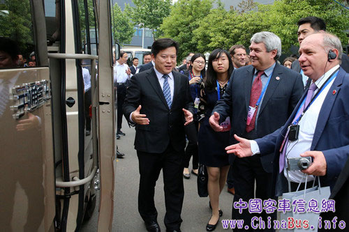 不僅如此,早在去年4月13日,宇通T7正式亮相之前,中央政治局常委、全國(guó)人大常委會(huì)委員長(zhǎng)張德江到宇通客車(chē)考察期間,就對(duì)宇通T7產(chǎn)生了極大的興趣。張德江詳細(xì)詢(xún)問(wèn)了車(chē)輛信息,并上車(chē)體驗(yàn)。在聽(tīng)取了宇通集團(tuán)黨委書(shū)記、總裁湯玉祥關(guān)于車(chē)輛振動(dòng)噪聲、功率、車(chē)輛設(shè)計(jì)等方面的匯報(bào)后,他高興地說(shuō):“你們這個(gè)(宇通T7)窗戶(hù)高,更安全一點(diǎn),更好一點(diǎn)。”他還贊許宇通為中國(guó)客車(chē)爭(zhēng)光。