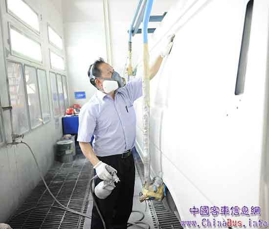 岑小云,金旅涂裝部修飾班的班長。二十多年來,從風華正茂步入金旅,到伴隨金旅品質飛躍,他一步步的成長幾乎與公司同齡?!巴垦b修飾并不是簡單的機械動作,人的主觀能動性占據(jù)更大的部分?!贬≡普f。對于客車這一個性化需求的產品,復雜的彩條和細節(jié)修飾都不能依賴機械,只能憑借工匠的技藝。使用空氣噴槍時,要掌握好氣壓,氣壓大了表面會粗糙,氣壓小了表面會形成顆粒。岑小云把自己稱為“汽車美容師”,“精細化的修飾,每一項內容都要追求完美”正是他所理解的“工匠精神”。