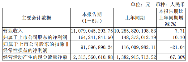 廈門金龍汽車集團股份有限公司發(fā)布半年度報告。公告顯示,公司半年度營業(yè)收入11,079,045,293.8,同比增長7.71%,歸屬于上市公司股東的凈利潤164,241,841.5,同比增長10.7%。