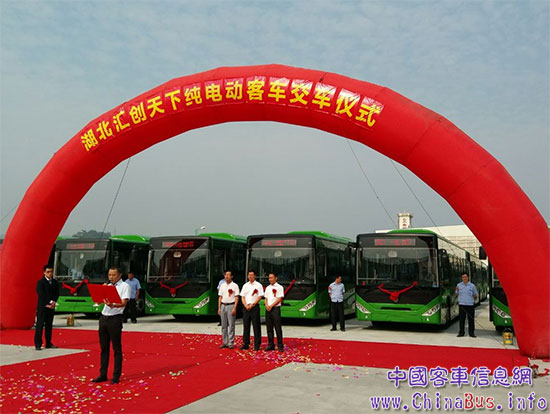 在這收獲的季節(jié),東風(fēng)超龍向湖北匯創(chuàng)天下交付首批30輛EQ6105CBEVT純電動(dòng)公交的交車(chē)儀式于2016年8月29日舉行。