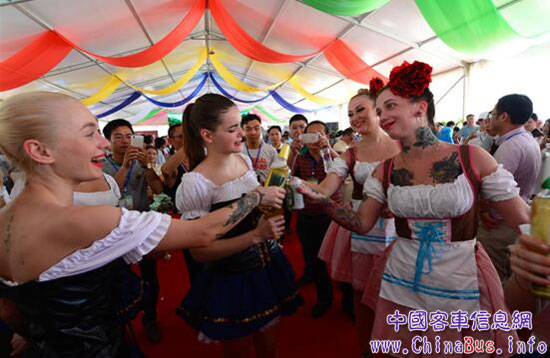 據(jù)了解,在此次服務(wù)啤酒節(jié)的25輛車輛中,大中型客車全部選用的是海格客車。