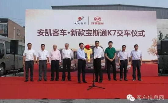 9月23日,35輛安凱新版寶斯通K7正式交付北京北汽出租汽車集團(tuán)有限責(zé)任公司(簡稱“北汽集團(tuán)”),將投放到公務(wù)接待、班線、旅游等線路中,屆時,安凱寶斯通K7將與北汽集團(tuán)攜手以優(yōu)異的品質(zhì)服務(wù)為高端會議、重要活動等提供運(yùn)輸服務(wù)。