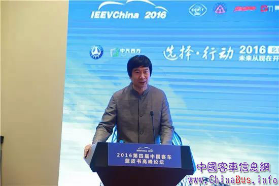 中國電工技術(shù)學(xué)會副秘書長韓毅為2016年中國客車藍(lán)皮書發(fā)布會致辭
