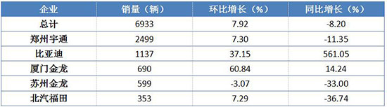 大型客車方面,宇通長(zhǎng)期處于領(lǐng)先地位,單月銷量超過(guò)第二、三名銷量總和,一直保持穩(wěn)健增長(zhǎng);此外,比亞迪和廈門金龍也實(shí)現(xiàn)了明顯增長(zhǎng),實(shí)現(xiàn)了37.15%和60.84%的環(huán)比增長(zhǎng)。