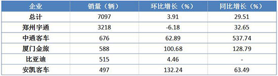 9月大型客車整車銷量前五名