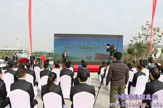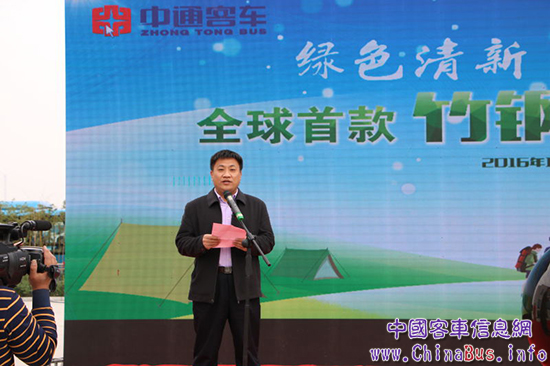 中通客車總經(jīng)理孫慶民首先致歡迎辭,他表示 ,該款全球首發(fā)的竹鋼營地房車是與營地開發(fā)企業(yè)聯(lián)手打造的一款外形新穎、天然環(huán)保型的全新產(chǎn)品,此次竹鋼房車的研發(fā)成功,標志著中通在房車領(lǐng)域乃至整個行業(yè)都做了一次新技術(shù)、新工藝、新材料的突破。