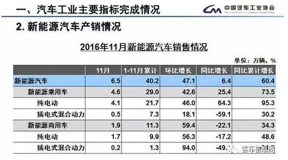 11月,我國新能源汽車汽車產(chǎn)銷量分別為7.2萬輛和6.5萬輛,同比分別增長12.8%和6.4%。至此,1-11月,我國新能源汽車?yán)塾嬩N售達(dá)40.2萬輛??磥?,今年“騙補”現(xiàn)象讓新能源汽車元氣大傷,完成此前中汽協(xié)調(diào)整的50萬輛目標(biāo)有一定難度。