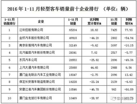輕型客車:前10榜單僅3家企業(yè)維持增長
