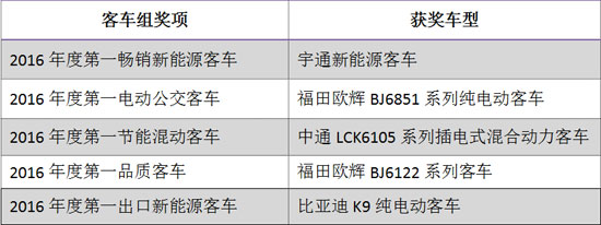 客車(chē)組五個(gè)獎(jiǎng)項(xiàng)及獲獎(jiǎng)車(chē)型一覽