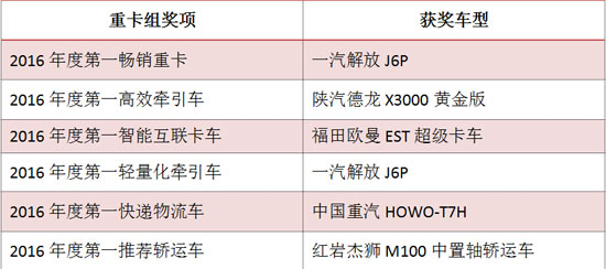 重卡組六個(gè)獎(jiǎng)項(xiàng)及獲獎(jiǎng)車(chē)型一覽