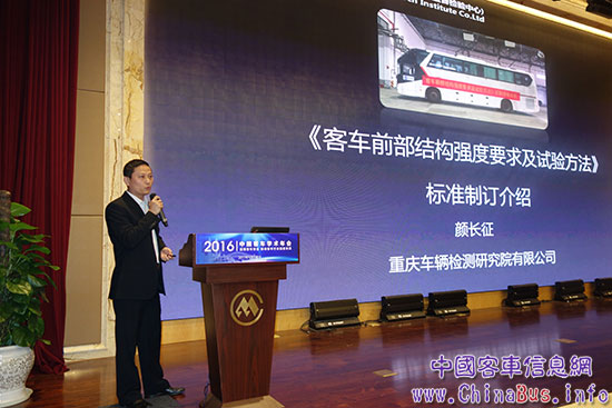 中國公路學(xué)會客車分會副理事長、會議協(xié)辦單位重慶車輛檢測研究院有限公司總經(jīng)理劉昌仁致歡迎詞,介紹了重慶車檢院國家客車質(zhì)量監(jiān)督檢驗中心的歷史和檢測、技術(shù)實力。該公司專業(yè)從事客車試驗檢測和技術(shù)研究20多年,作為全國資質(zhì)、能力最為齊全的汽車檢測機構(gòu)之一,建設(shè)了具有國際先進水平的試驗檢測設(shè)施和專業(yè)的技術(shù)研究團隊,建成了占地500畝的重慶機動車強檢試驗場,正在建設(shè)8萬m2的新基地試驗室,多次主持國家部委科技攻關(guān)項目及標(biāo)準(zhǔn)制修訂工作,為客車技術(shù)提供測試與評價專業(yè)服務(wù),為客車行業(yè)健康發(fā)展和人民群眾安全、便捷、舒適出行努力前行。2016年,該公司作為技術(shù)牽頭單位,制訂了《營運客車安全技術(shù)條件》,并完善了客車主被動安全、輔助駕駛測試能力,經(jīng)過前期周密準(zhǔn)備和充分論證,將于2017年推出“中國客車安全評價規(guī)程”,通過定期發(fā)布測評車型的測試結(jié)果,將為政府主管部門對客車安全性監(jiān)管提供技術(shù)支撐,為生產(chǎn)企業(yè)產(chǎn)品研發(fā)提供對標(biāo)依據(jù),為用戶購車提供數(shù)據(jù)參考。劉昌仁總經(jīng)理表示,未來,重慶車檢院將與客車行業(yè)的同仁一道,共同為促進我國客車安全技術(shù)水平提升,推動客車行業(yè)健康、可持續(xù)發(fā)展而不懈努力。