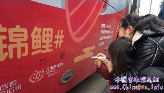 上午,巴士從寬窄巷子出發(fā),搭載著游客,一路行經(jīng)天府廣場(chǎng)、IFS等成都市著名地標(biāo),最后抵達(dá)熊貓基地。汽車穿行在成都中心城區(qū),成為一條流動(dòng)的風(fēng)景線,一路吸引不少市民關(guān)注。大家紛紛拿起手機(jī),抓拍這輛“錦鯉巴士”,分享到個(gè)人社交平臺(tái)。來(lái)自重慶的游客劉先生笑著說(shuō),“這輛‘錦鯉巴士’還挺有意思的。我本來(lái)只是隨便逛一逛,沒(méi)想到跟它不期而遇。這是新年好兆頭,希望好運(yùn)可以一直延續(xù)”?!拔覀兂啥脊皇怯袀€(gè)有愛(ài)的城市,這個(gè)巴士有創(chuàng)意?!背啥际忻褡T小姐按下朋友圈的分享鍵后說(shuō)道。不一會(huì)兒,她發(fā)布在微信朋友圈上的“錦鯉巴士”照片,就得到幾十位好友點(diǎn)贊?!坝信笥堰€留言問(wèn)‘在哪里可以偶遇’,他們也要來(lái)抓拍錦鯉,祈求好運(yùn)氣?!痹趯捳镒?,不少游客在“錦鯉巴士”上簽字留言,許下新年愿望。