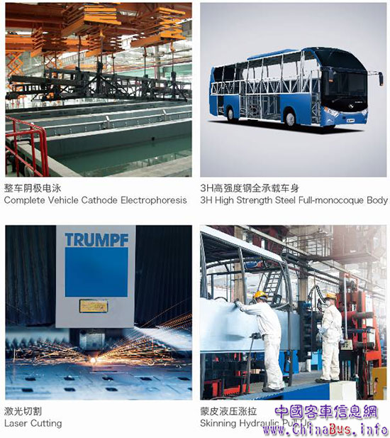 經(jīng)過近30年的不斷創(chuàng)新和積累,金龍客車創(chuàng)造了行業(yè)獨特的“金龍生產(chǎn)方式”,以“工藝領(lǐng)先、做工細致、品質(zhì)精良”而蜚聲業(yè)界。金龍擁有國內(nèi)領(lǐng)先的客車生產(chǎn)線和國際領(lǐng)先的專業(yè)化生產(chǎn)裝備,并應(yīng)用了整車陰極電泳、3H高強度全承載車身、激光切割、蒙皮液壓漲拉和機器人焊接等先進制造工藝。生產(chǎn)組織和流程設(shè)計充分運用IE (Industrial Engineering)管理技術(shù),不僅生產(chǎn)效率居于行業(yè)領(lǐng)先,還有效保證了生產(chǎn)過程品質(zhì)。
