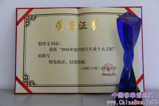 黃??蛙?chē)研究院高級(jí)工程師、電氣新能源所所長(zhǎng)、黃海純電動(dòng)和混合動(dòng)力客車(chē)開(kāi)發(fā)項(xiàng)目帶頭人殷傳文,憑借對(duì)客車(chē)設(shè)計(jì)細(xì)節(jié)的極致追求和不畏艱難、精益求精的執(zhí)著精神,獲評(píng)“汽車(chē)研發(fā)和設(shè)計(jì)十大工匠”。