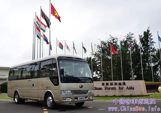 2017年3月23-26日,博鰲亞洲論壇2017年年會(huì)在海南正式召開,主題為“直面全球化與自由貿(mào)易的未來(lái)”。本次年會(huì)共有來(lái)自50個(gè)國(guó)家和地區(qū)的1727名代表參加,自主品牌高端公商務(wù)車——宇通T7再次為參會(huì)的各國(guó)政要、代表提供交通運(yùn)輸接待服務(wù)。