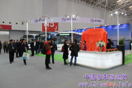 (金龍客車(chē)展臺(tái)前人頭攢動(dòng))