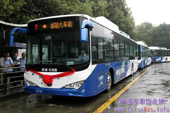 在杭州純電動公交車中,有78.72%來自于比亞迪,景區(qū)中更是全部使用比亞迪純電動公交車。