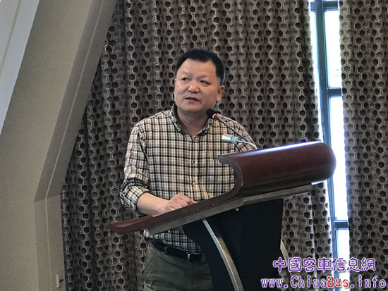 (比亞迪商用車銷售事業(yè)部公關(guān)總監(jiān)肖海平介紹比亞迪客車產(chǎn)品優(yōu)勢)