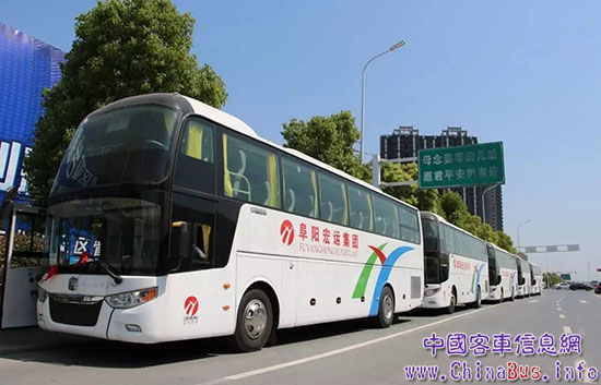 走在阜陽街頭的宏運(yùn)集團(tuán)旅游班車