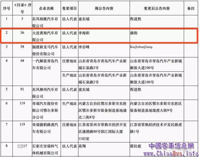5月12日,工信部對申報(bào)《道路機(jī)動(dòng)車輛生產(chǎn)企業(yè)及產(chǎn)品公告》(第296批)的車輛新產(chǎn)品予以公示,共包括3360款整車及底盤產(chǎn)品。同時(shí),工信部將《道路機(jī)動(dòng)車輛生產(chǎn)企業(yè)及產(chǎn)品公告》(第296批)擬發(fā)布的新增車輛生產(chǎn)企業(yè)及已準(zhǔn)入企業(yè)變更信息情況予以公示。其中,值得注意的是,大連黃海汽車有限公司法人代表已由李海陽變更為康韻。