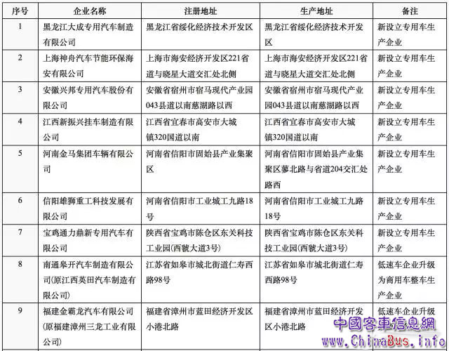 擬發(fā)布新增車輛生產(chǎn)企業(yè)清單