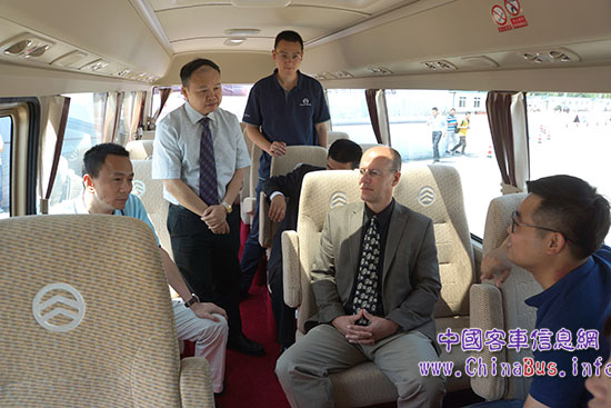 金旅客車總工程師陳篤廉、國內(nèi)銷售總監(jiān)賴志藝、美國PSI公司副總裁Ehlers與媒體記者就該車型深入探討