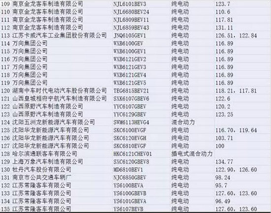 按照非快充類純電動(dòng)客車(chē)系統(tǒng)能量密度(Wh/kg)115以上、快充類純電動(dòng)客車(chē)快充倍率15C以上、插電式混合動(dòng)力(含增程式)客車(chē)節(jié)油率水平60%以上,才能享受中央財(cái)政補(bǔ)貼最高系數(shù)標(biāo)準(zhǔn)來(lái)看,可獲得最高補(bǔ)貼調(diào)整系數(shù)的非快充類純電動(dòng)客車(chē)有94款。