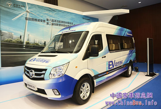 【峰會(huì)現(xiàn)場(chǎng)展出的綠色、高效、可靠、智能的福田圖雅諾EV純電動(dòng)】