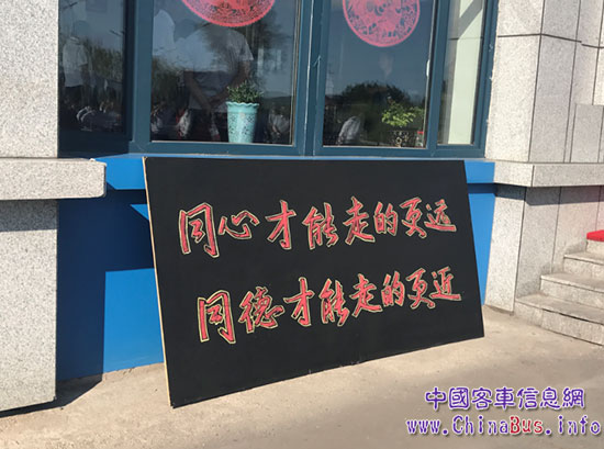 門口,擺放著員工親手繪制的大字——“同心才能走的更遠(yuǎn),同德才能走得更近”。在客車行業(yè)的非常時期,這句話瞬間拉近了所有人心里的距離。
