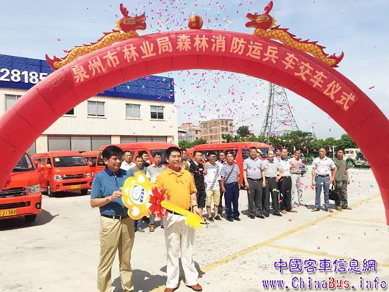 2017年7月18日,22輛威武的新金威交付給泉州市林業(yè)局,用于運輸各級林業(yè)局消防官兵上山巡邏搶險,助力森林消防官兵守護泉州的“綠水青山”。