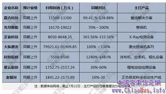 目前共有7家主要鋰電設(shè)備上市企業(yè)披露2017年上半年營收情況。