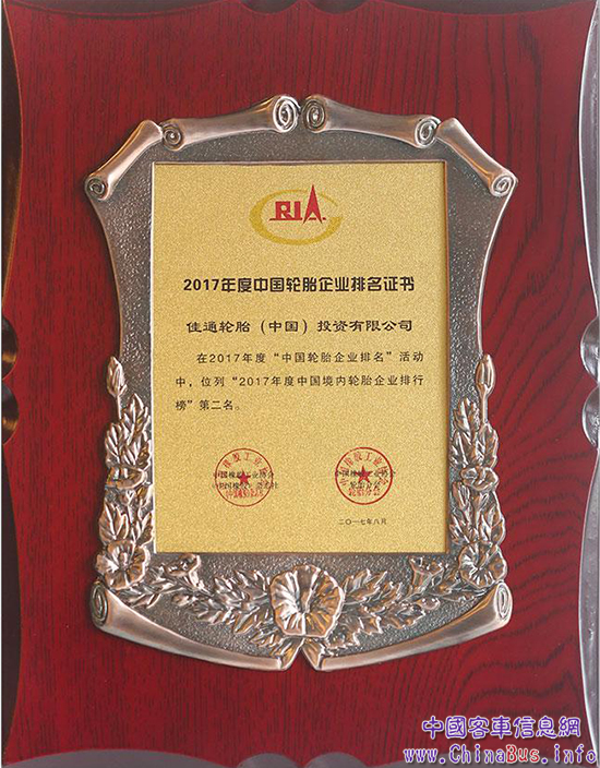 2017年8月24日,中國(guó)橡膠工業(yè)協(xié)會(huì)《中國(guó)橡膠》雜志社和輪胎分會(huì)聯(lián)合發(fā)布了“2017年度中國(guó)輪胎企業(yè)排名”。其中,佳通輪胎憑借穩(wěn)步增長(zhǎng)的業(yè)績(jī)表現(xiàn)和市場(chǎng)口碑,從57家內(nèi)外資輪胎企業(yè)中脫穎而出,以2016年銷售額131億元躋身“中國(guó)境內(nèi)輪胎企業(yè)排行榜”第二名。