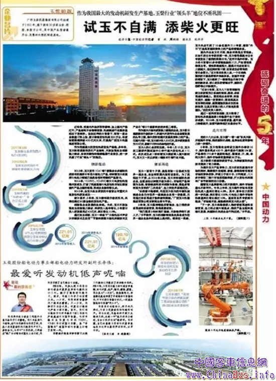 黨的十八大以來,在經濟下行的大背景下,玉柴集團銷量逆勢上揚,穩(wěn)居行業(yè)首位,并率先推出了10余款滿足國六排放法規(guī)的發(fā)動機。玉柴的搶眼成績引起了媒體的關注。9月8日,相關媒體迎接黨的十九大特刊專版對玉柴進行了報道,全景展現玉柴的發(fā)展歷程及經營成績。