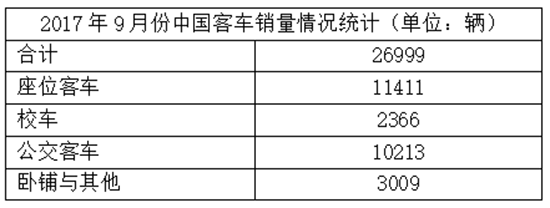 相關(guān)數(shù)據(jù)顯示:2017年9月,中國(guó)客車(chē)市場(chǎng)銷(xiāo)售座位客車(chē)11411輛、校車(chē)2366輛、公交客車(chē)10213輛,臥鋪和其他客車(chē)3009輛。根據(jù)主流企業(yè)的大單情況可以判斷,本月銷(xiāo)售的公交客車(chē)大多為新能源客車(chē)。
