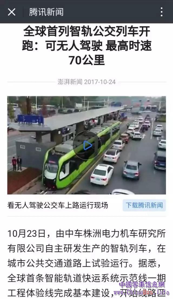 一早,騰訊新聞微信端頭條居然推送“全球首列智軌公交列車開跑:可無人駕駛 最高時(shí)速70公里。”